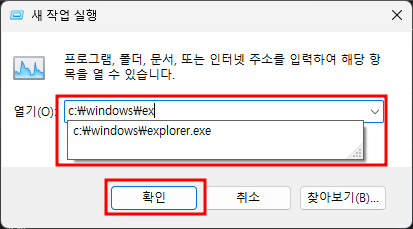 새작업실행창 - c:\windows\explorer.exe - 확인