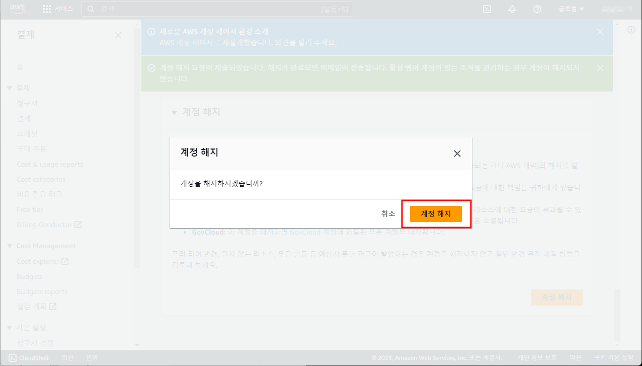 이메일로도 공지되니 이메일 및 해지완료 문구 확인