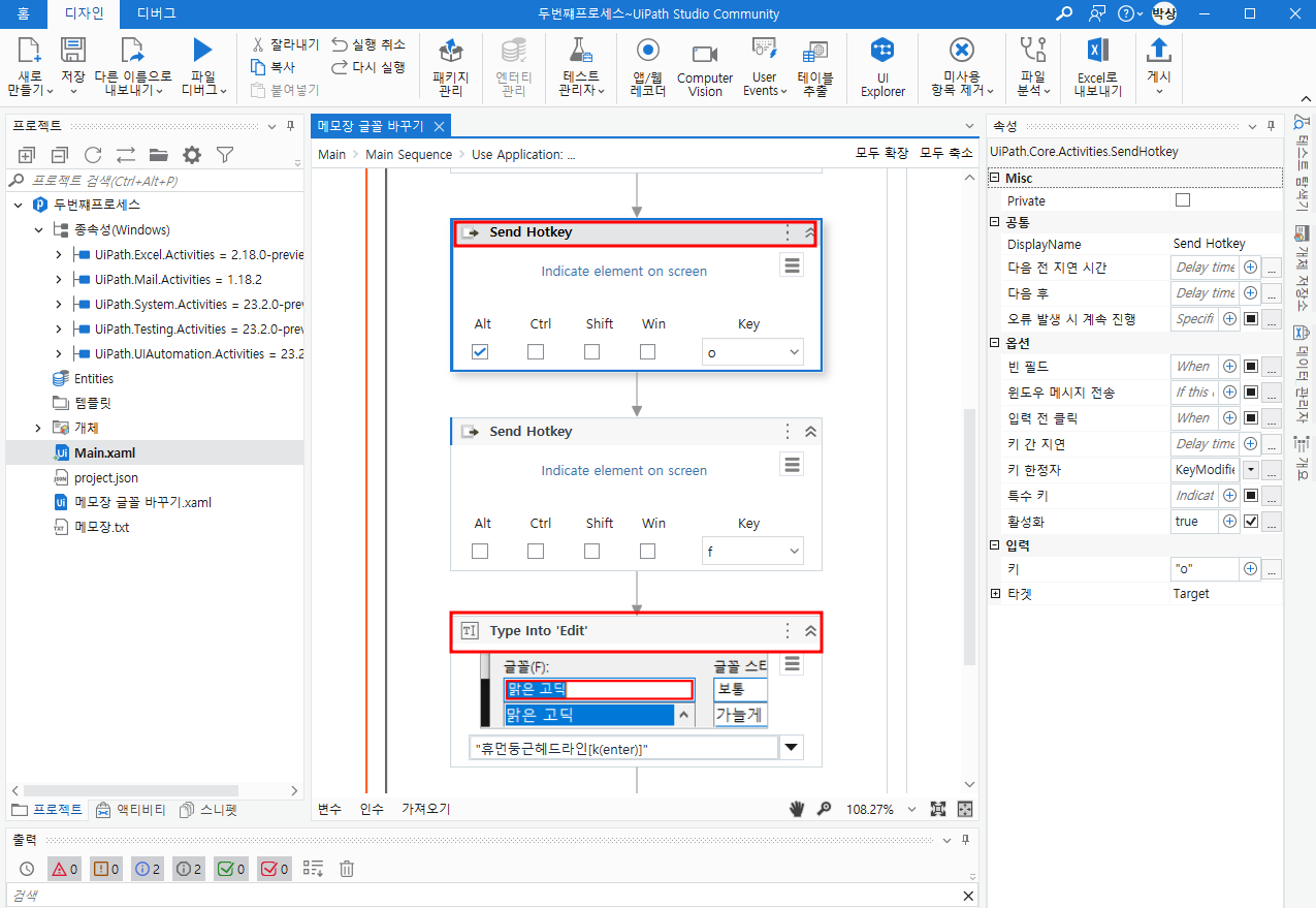 send hotkey - 글꼴서식 창 열기 - 글꼴 입력이벤트 추가 - 완료