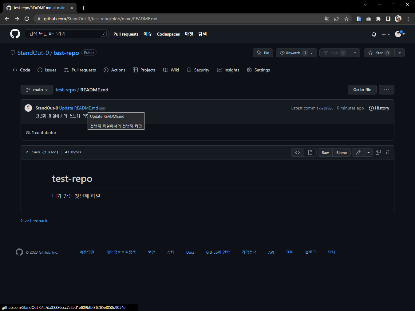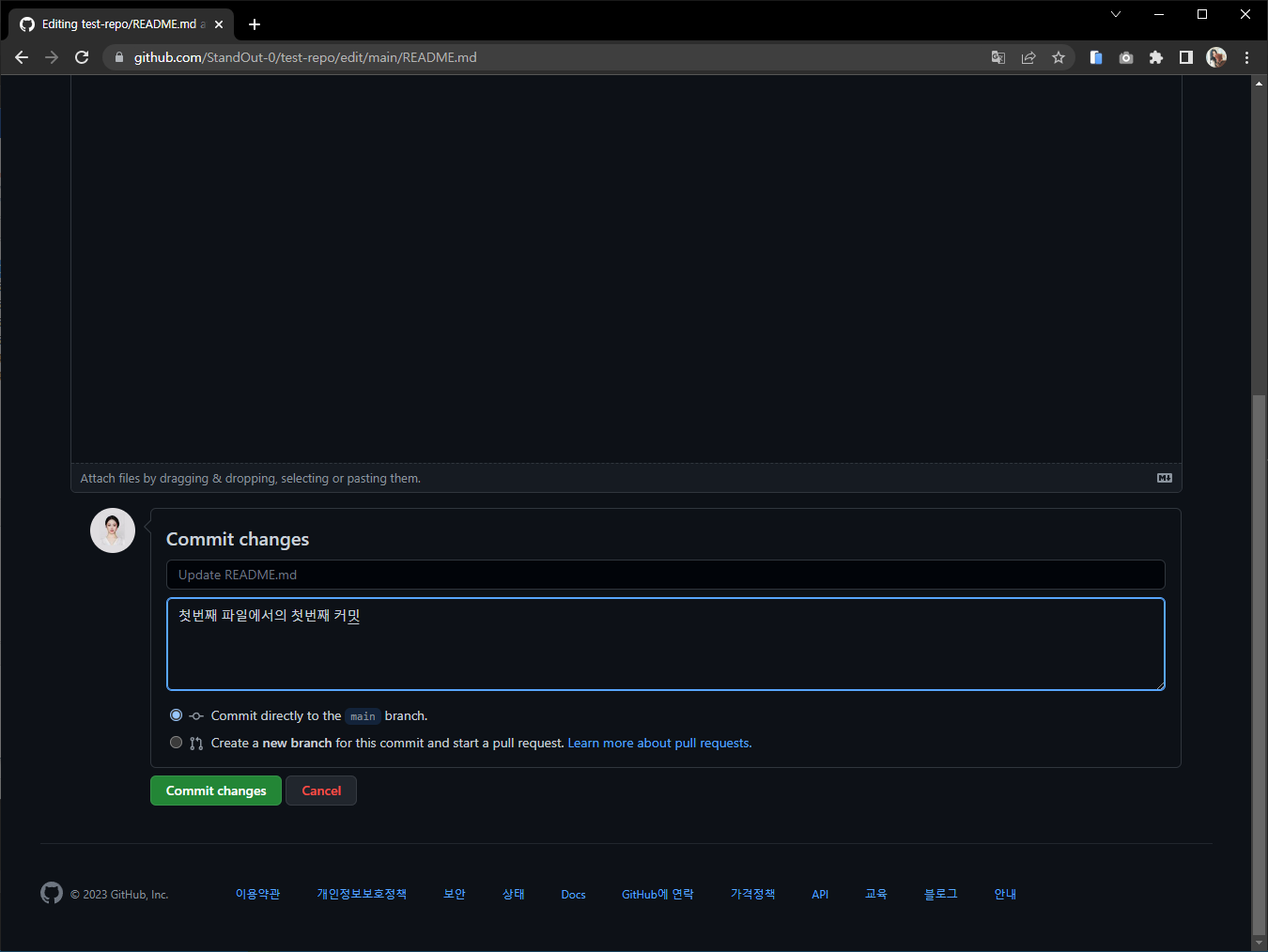 커밋메시지를 작성 한후 커밋