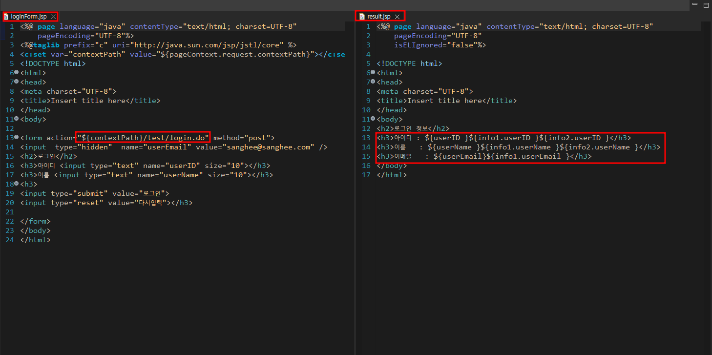 login.do의 메소드를 거쳐 result.jsp엔 회원정보가 출력될 것이다.