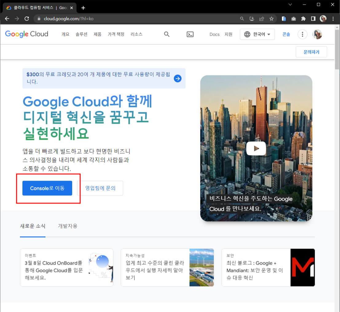 구글클라우드 접속
