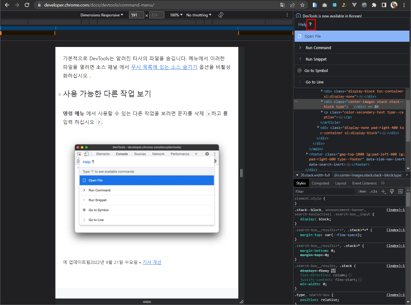 도움메뉴가 자동 나타난다.