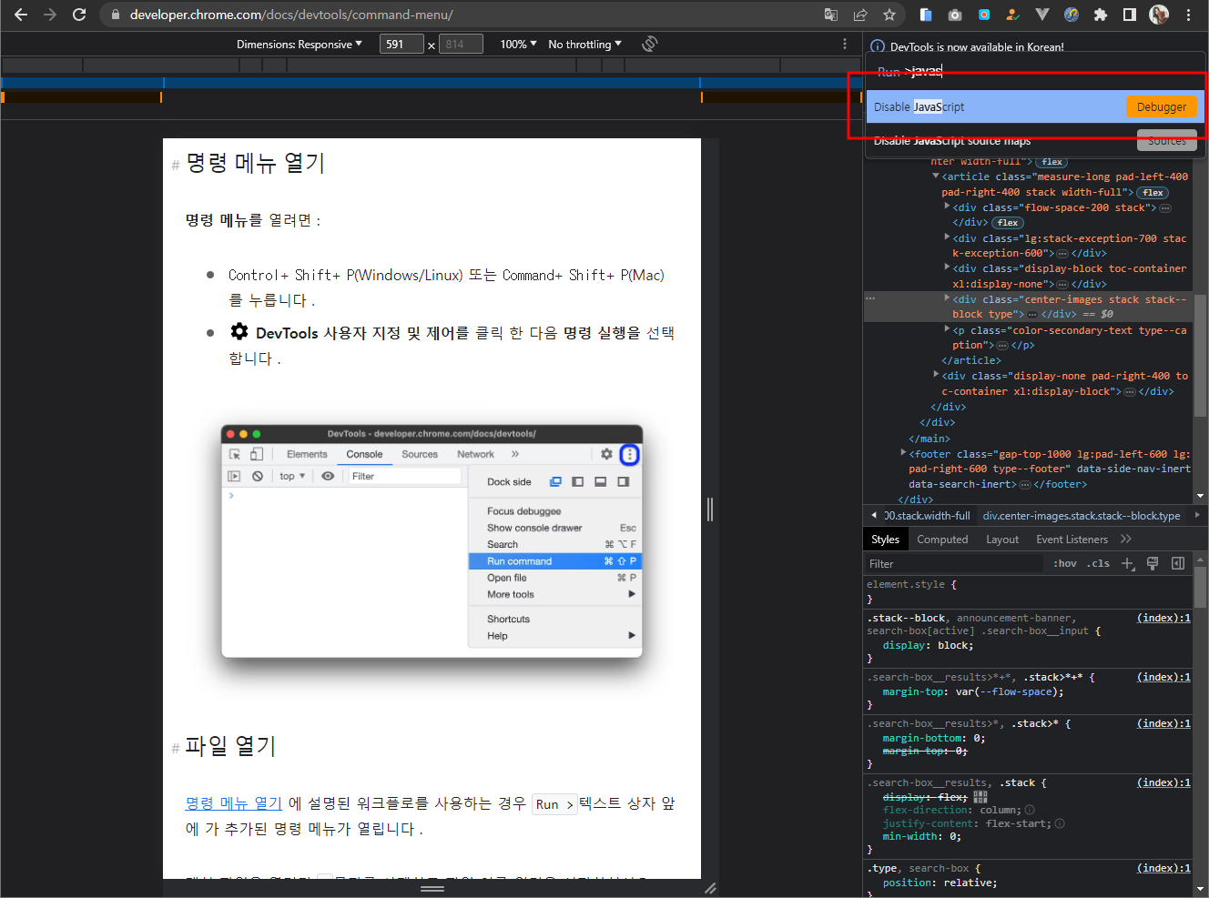 개발자모드를 킨 이후, Ctrl+Shift+p