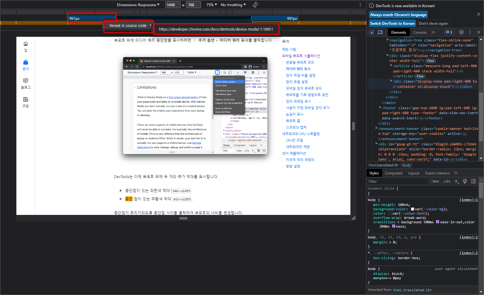 Chrome 개발도구 DevTools 모바일/반응형 뷰포트 시뮬레이션: 모바일로보기 모바일화면 회전하기
