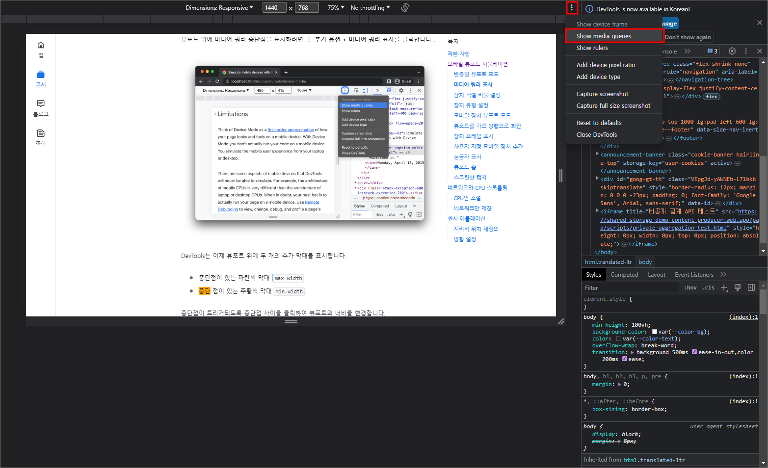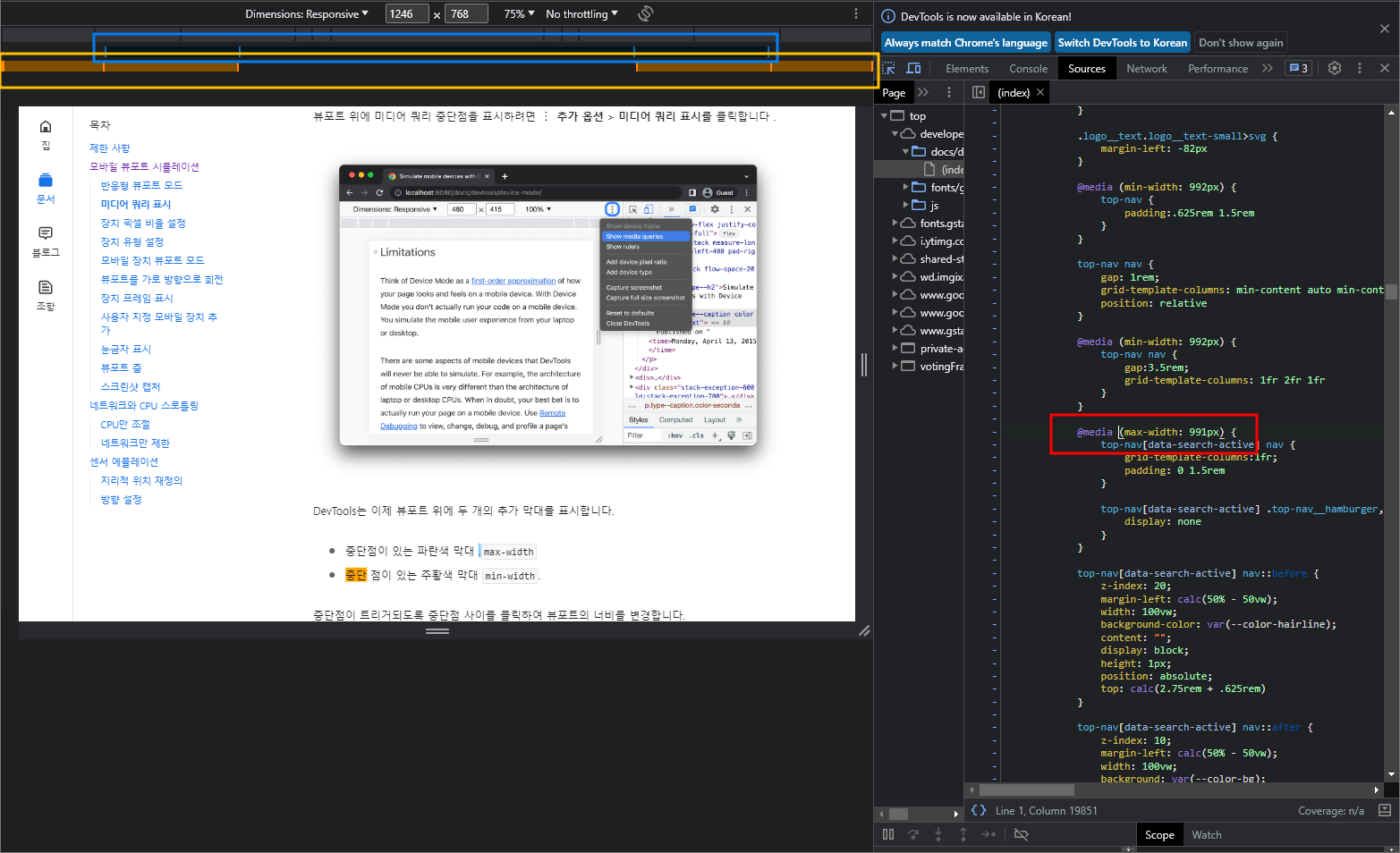 추가옵션 - 미디어 쿼리 표시