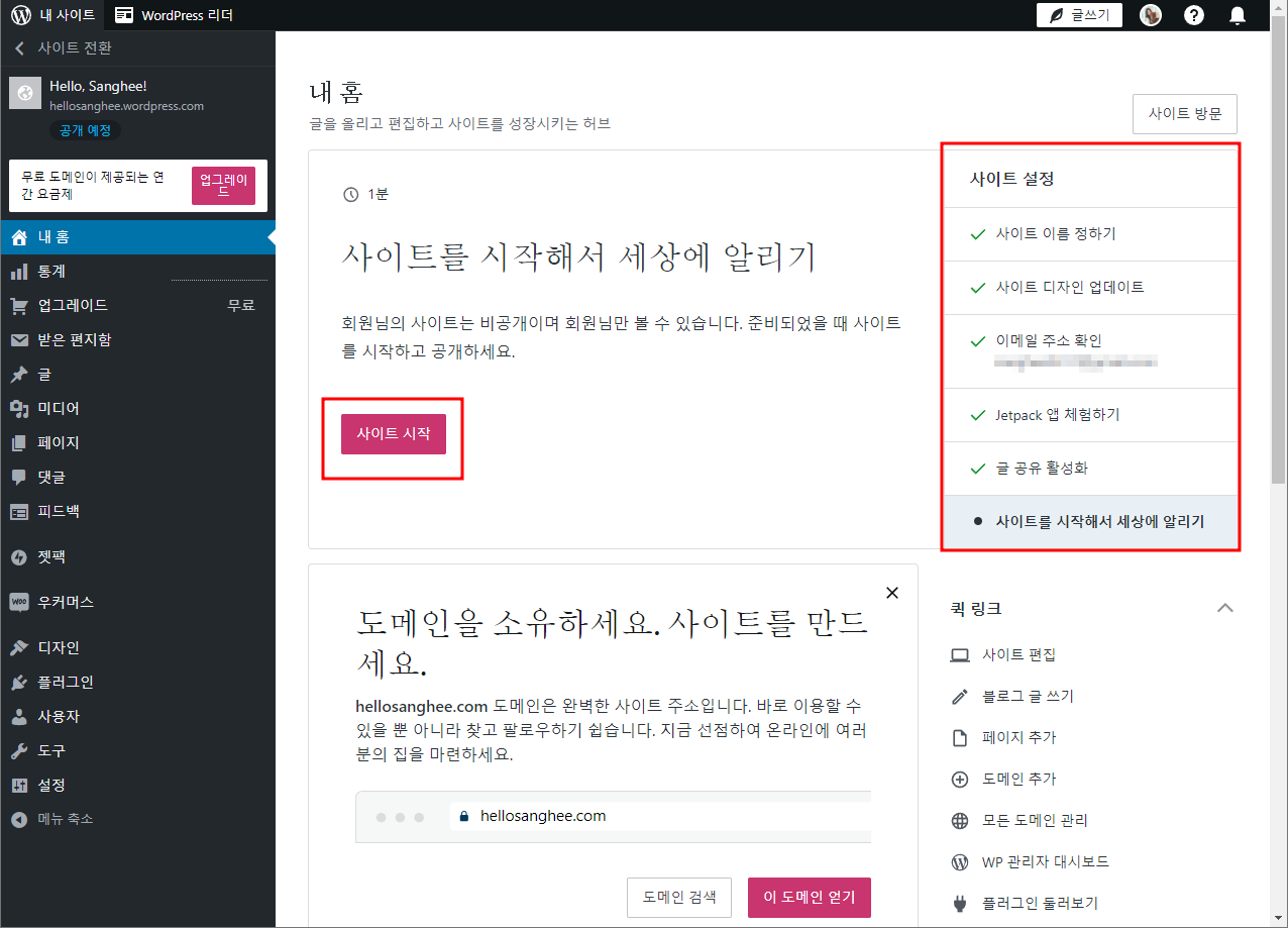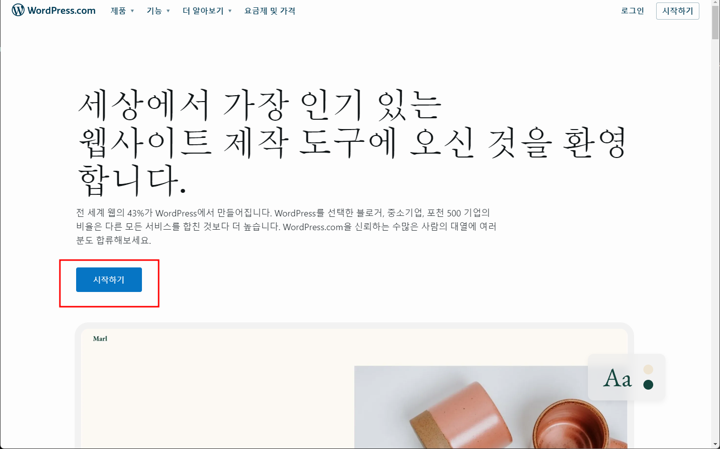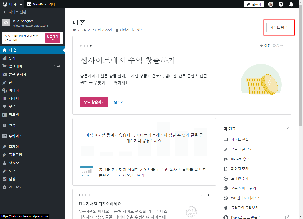 wordpress.com에 접속 - 시작하기