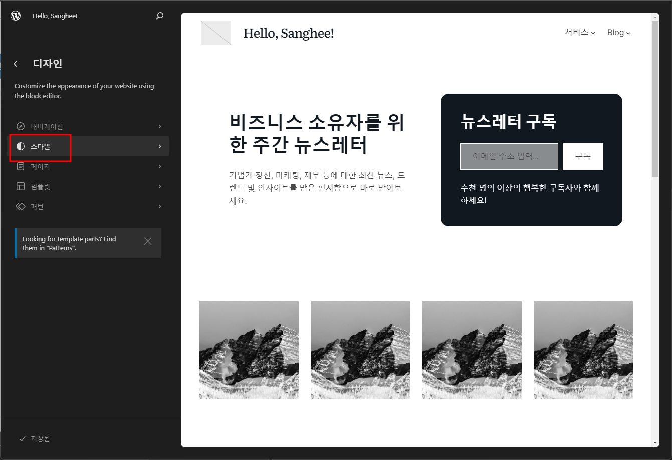 관리자 - 디자인 - 편집기 - 스타일