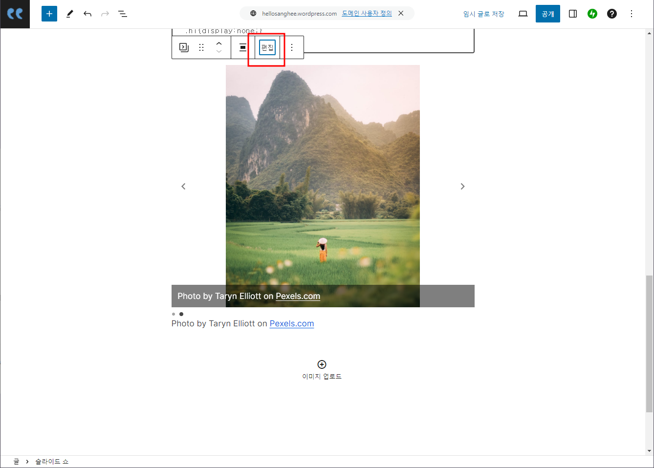 추가된 슬라이드 - 편집을 누를경우 이미지를 수정/추가 할 수 있다.