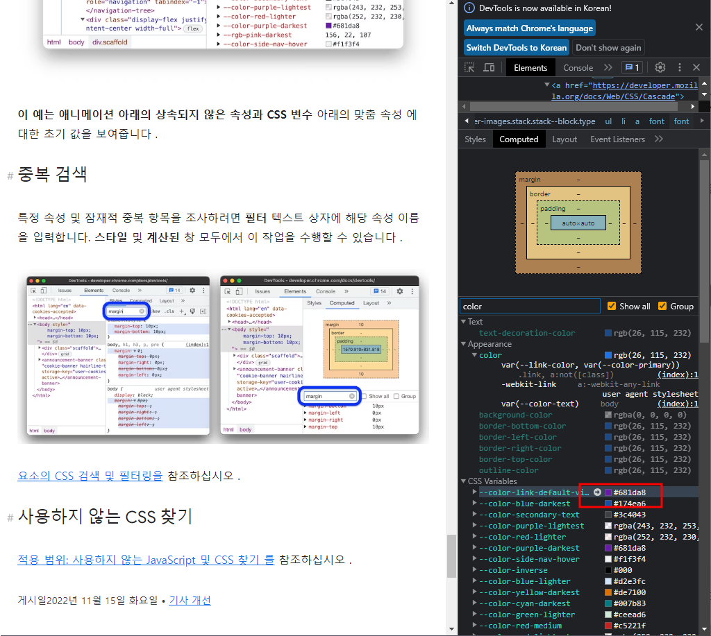 | Chrome 개발도구, css var() 변수값 확인하기 (0) | 2023.08.06 |