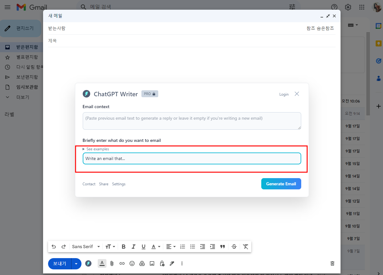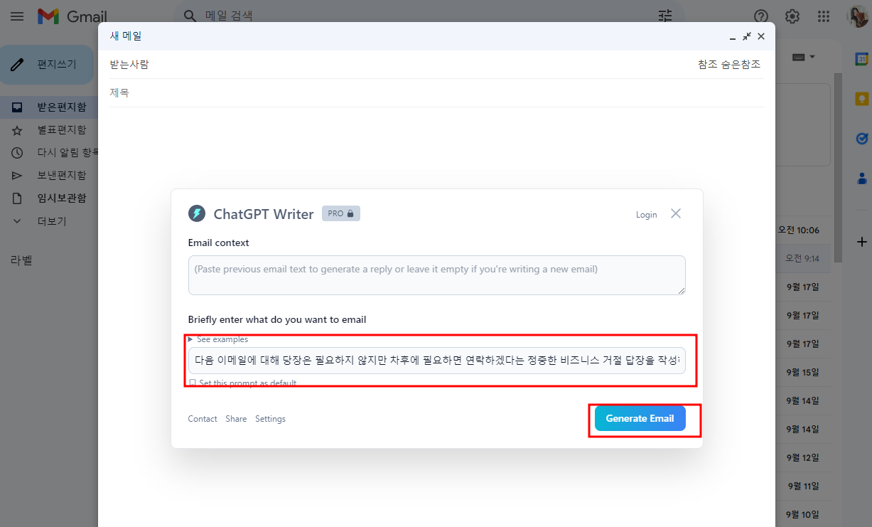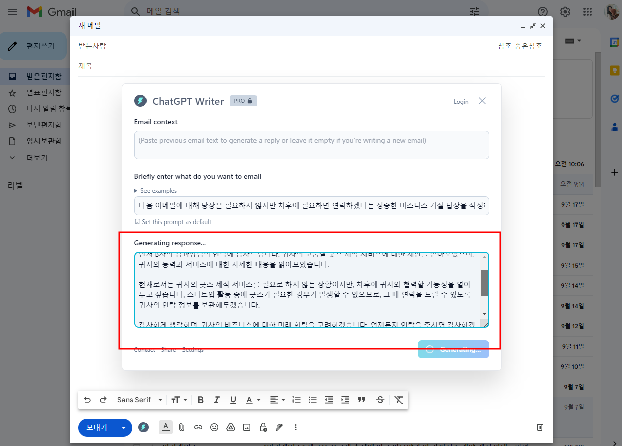 답변내용 + 명령하기 - generate email 클릭