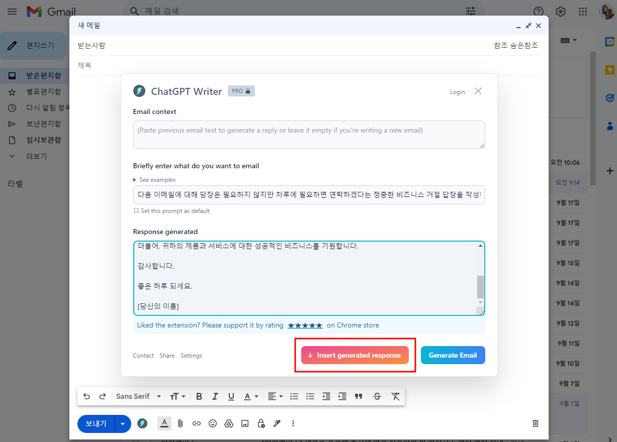 insert generated response클릭해 삽입